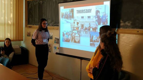 Od rana uczniowie w międzynarodowych zespołach pracowali nad prezentacjami pt.: ,,Co mi się podobało w Rumunii".