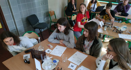 Z samego rana uczniowie wzięli udział w lekcji chemii na temat wykorzystania octu, który był ważnym elementem życia w czasach wojny i PRL. W tym samym czasie nauczyciele ze szkół partnerskich prowadzili zajęcia z uczniami naszej szkoły. Potem uczestnicy projektu pracowali nad prezentacjami, a nauczyciele uczestniczyli w warsztatach na temat projektów w edukacji.